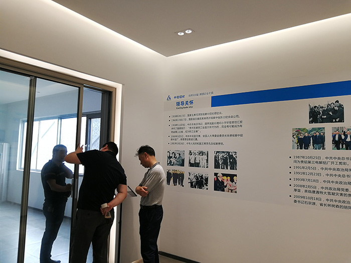 2018年10月15日受贵州铝厂有限责任公司党委书记、执行董事陈刚、副总经理(主持工作)聂亚文的委托;财务部主任叶华、彩铝公司总经理刘吉阳、铝合金厂厂长刘文强、贵铝华颐房地产开发公司副总经理张朝晖等一行领导团队,来到佛山三水中铝铝材九府系统门窗生产基地,进行生产、品质、研发、营销以及企业管理等一系列的深入调研及指导工作;受到九府系统门窗执行总经理宁玺亮、副总经理徐杰以及相关部门领导热情接待。